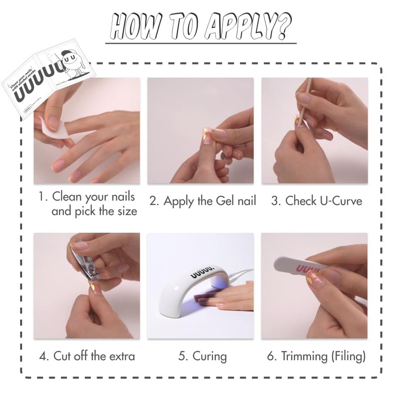- PATENTED UUUUU. NAIL TECHNOLOGY: UUUUU. semi cured gel nail wraps offer a revolutionary way to achieve salon-quality nails at home. Made with real gel, these semi cured gel nail stickers are cured up to 50%, allowing for easy application on any nail shape.