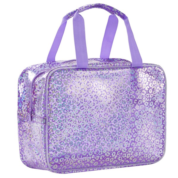 UUYUUY PVC Clear Makeup Bag, Leopard Purple, Clear Makeup Bag