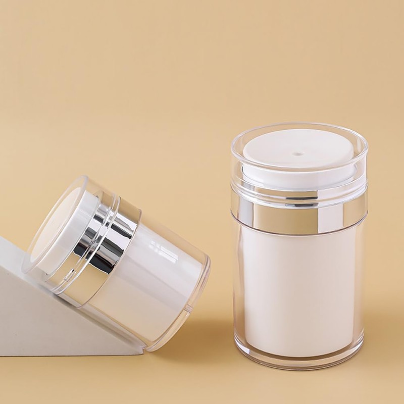 UUYYEO 2 Pcs 30g Refillable Airless Pump Jars Travel Face Cream Jars Leak Proof Empty Cosmetic Jars Makeup Lotion Dispensers Pump Moisturizer Containers