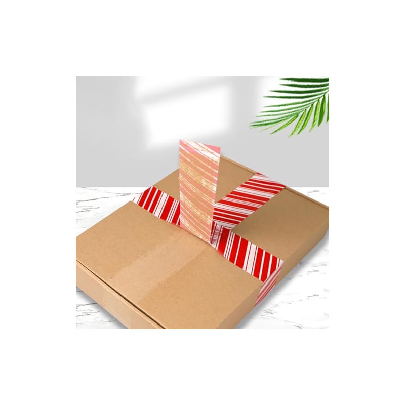 - The packing tape colored in vibrant red and white, printed with striped pattern, classic and festive, perfect for Christmas packing decorations