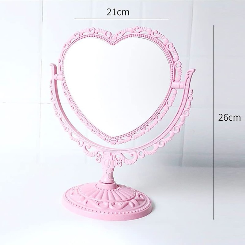 UUYYEO Heart Shaped Cosmetic Mirror Tabletop Vanity Makeup Mirror Swivel Double Sided Cosmetic Mirror Lightweight Dresser Mirror for Table Pink