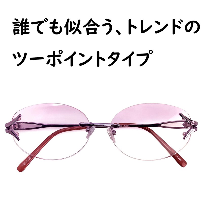 - フチなしの特殊デザインのツーポイントフレーム。フレームレスで視界のジャマにならなく見やすい、そして素顔の印象をあまり変えません。老眼鏡もオシャレにアレンジ。