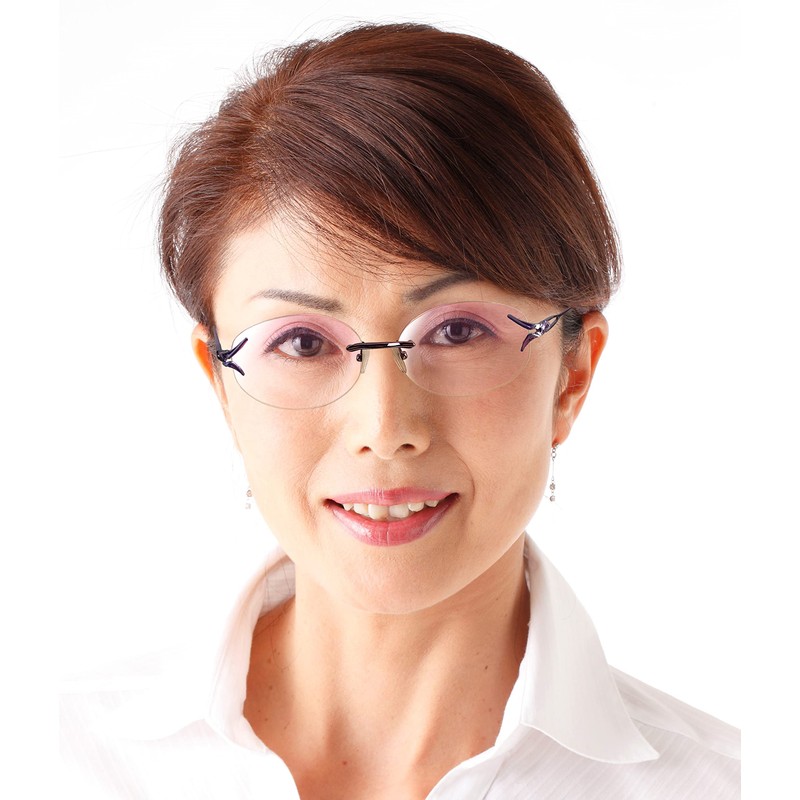 老眼鏡 レディース 婦人用 おしゃれ 血色 アイシャドウ ハーフカラーレンズ 非球面UVコート ツーポイント フチ無し ラベンダー シニアグラス 度数 +1.0