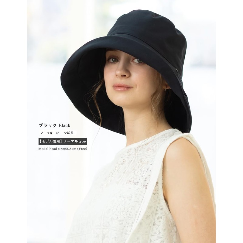 [Loo&c] [ルーアンドシー] 帽子 レディース 大きいサイズ つば広 撥水 UVシャルマンハット 遮光100% 紫外線対策 春夏 uvカット 接触冷感 あご紐付き 防水 梅雨【XL(61-63cm)-つば長×ブラック】