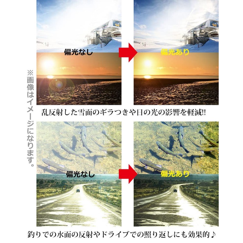 太陽光などの乱反射、水面やガラスなどによる屈折した眩しい光を取り除く効果があります。