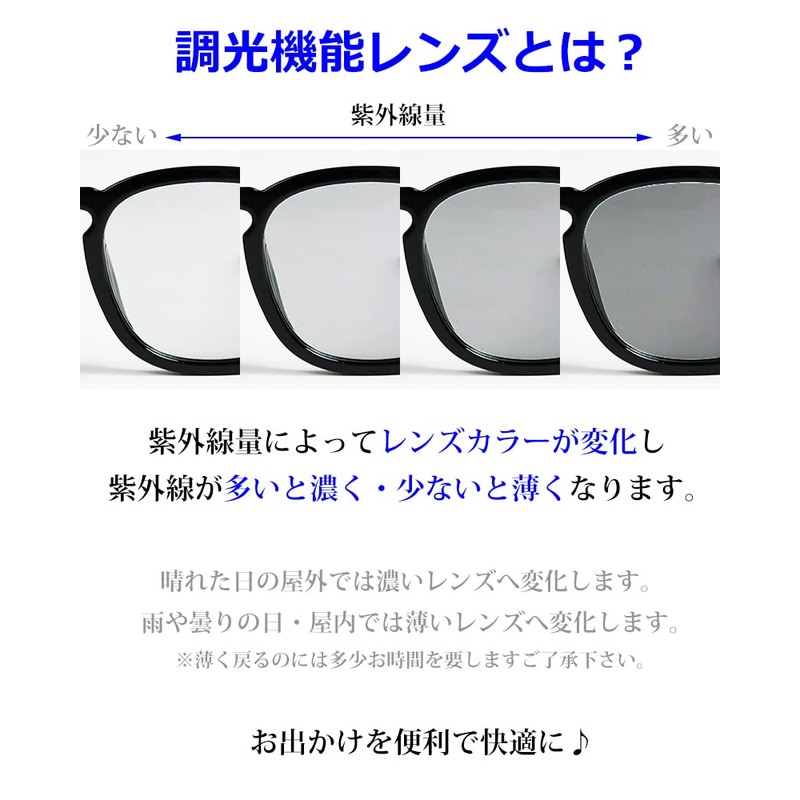 - 【レンズ機能】UVカット99.9%/調光/偏光レンズ(紫外線透過率1%以下)