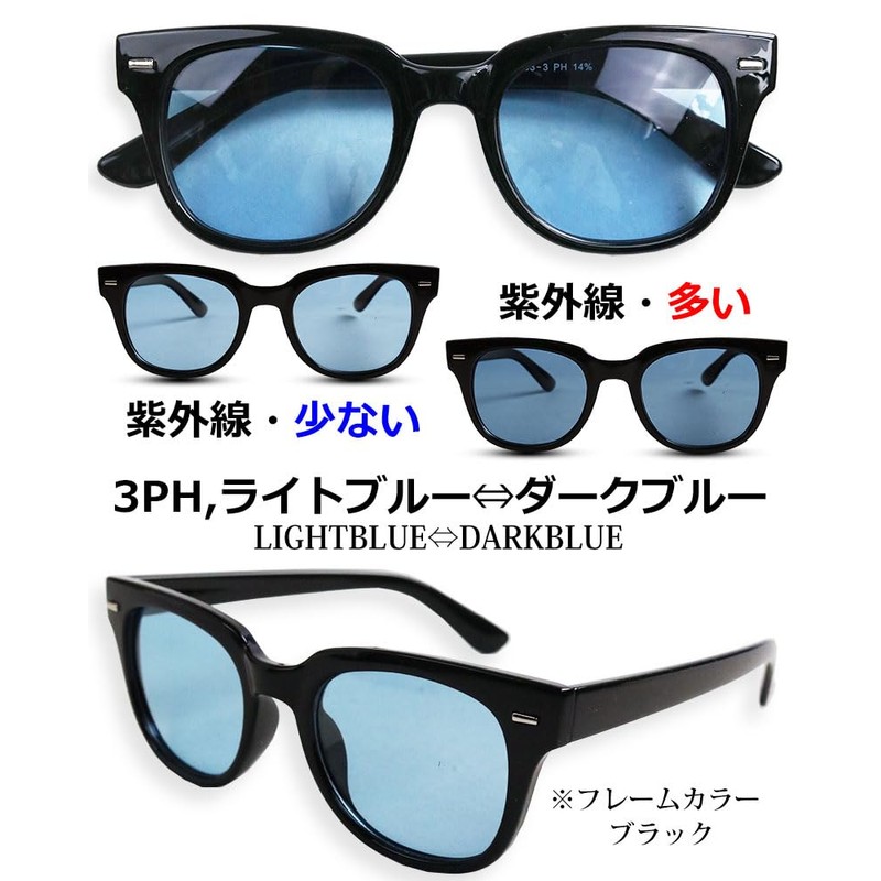 [クインテット] 高機能 偏光 調光 サングラス メンズ ウェリントン 偏光レンズ 調光レンズ UVカット 眼鏡 カラーレンズ 28-ty-2853ph (3ph ブラック/ブルー)