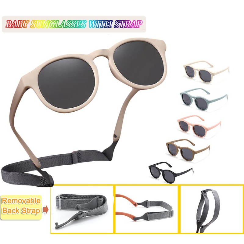 - ⛅ Snug Fit with Strap: this comfortable baby sunglasses coming with soft strap, fits comfortable around the back of your baby's head and keep the sunglasses stay on, even with tiny ones. Bonus with carry pouch and wipe cloth, polarized test card.