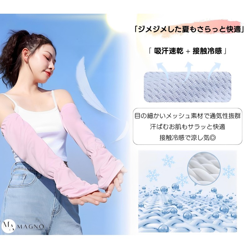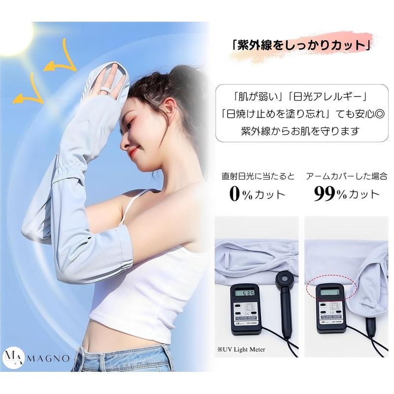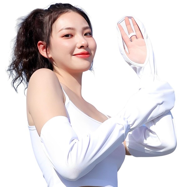 [マグノ] アームカバー レディース 腕カバー 指先まで ロング 手袋 uvカット 日焼け防止 吸汗速乾 接触冷感 (ホワイト)