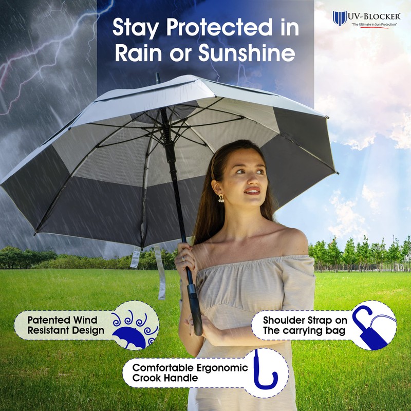UV-Blocker Sun Umbrella UV Protection Fashion Umbrella - Large Sun Blocking - Windproof - Auto Open - Vented Double Canopy - UPF 55+ - Blocks 99% of UVA UVB Rays - 48"