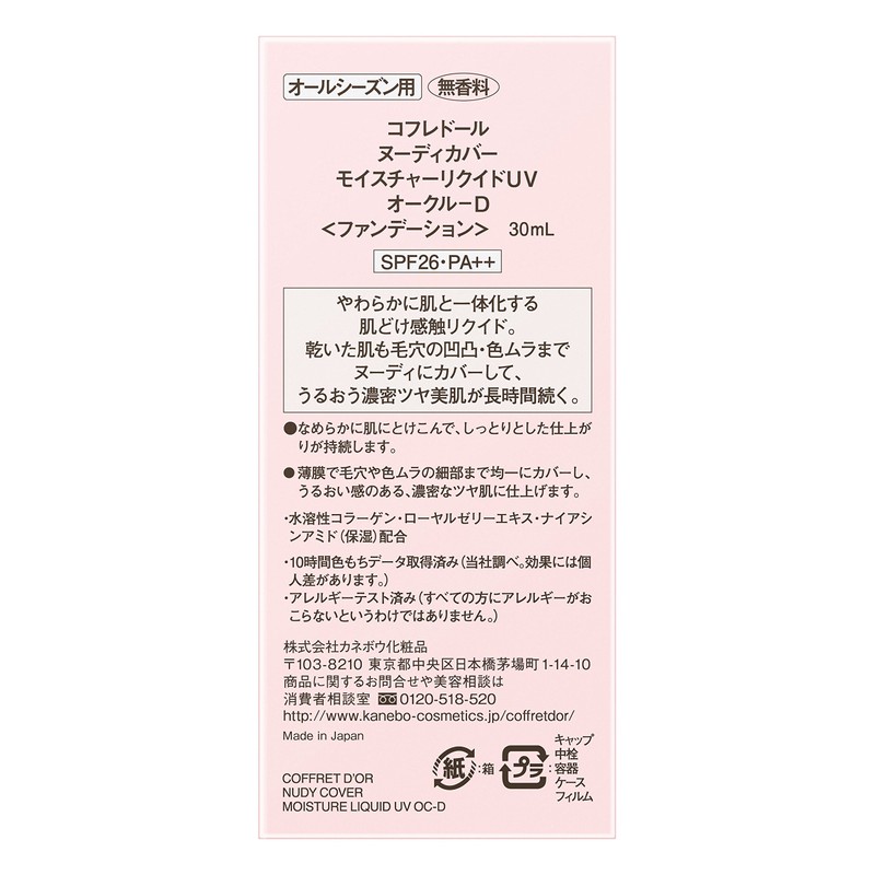 コフレドール ファンデーション ヌーディカバーモイスチャーリクイドUV オークルD SPF26/PA++ 30mL