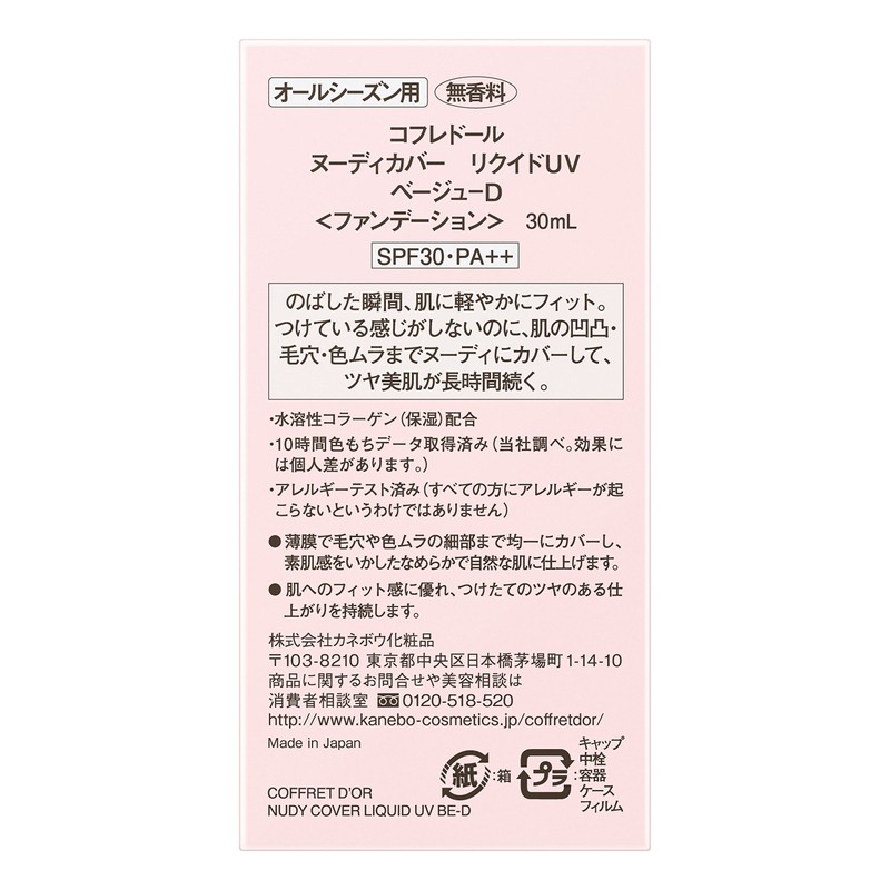 コフレドール ファンデーション ヌーディカバーリクイドUV ベージュD SPF30/PA++ 30mL