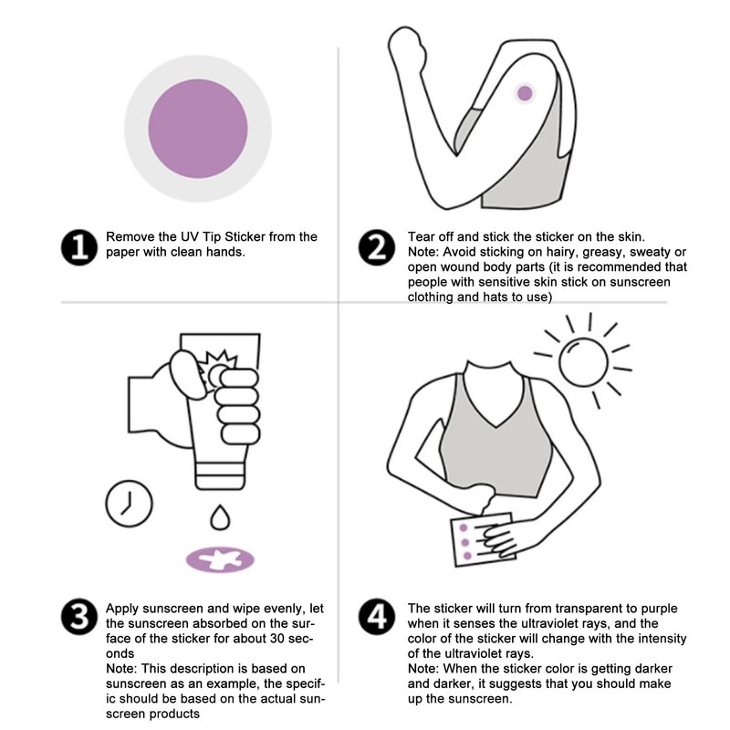 - [Sensitive uv detection] - Transparent stickers turn purple when exposed to UV rays, indicating the strength of sun rays. Darkening color signals the need to apply sunscreen.