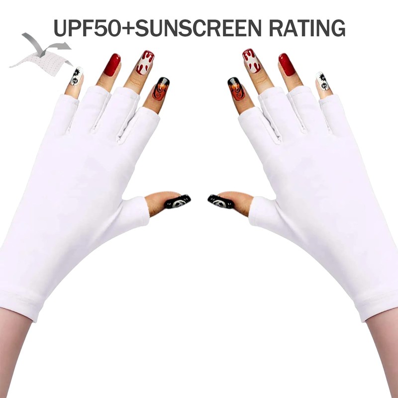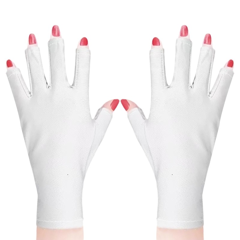 - Versatile Use - White UV protection gloves for gel nails are suitabled for nail lamp curing use in salons or at home.It also suitable for usual driving, go out traveling, hiking, running or any other outdoor sports.