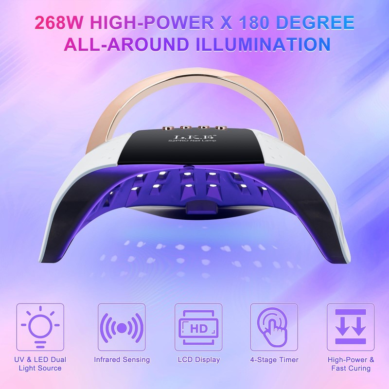 UV Lampe für Gelnägel, 268W UV Lampe Nägel LED Lampe Nägel, Verbessertem Ladestecker und 4 Timern LCD-Display Infrarotsensor Heim und Salon