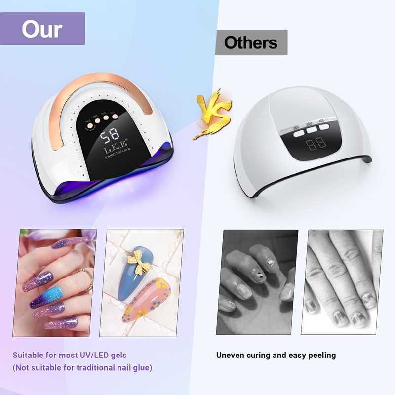 - Langlebige LED-Technologie: Im Vergleich zu anderen Produkten bietet die leistungsstarke UV-Lampe für Gelnägel eine schnellere Aushärtungsgeschwindigkeit und einen verbesserten Aushärtungseffekt. Jede Schicht Gel-Politur benötigt nicht länger als 99 Sekunden zum Aushärten. (Bitte beachten Sie: 1. Die Dicke und Farbe des Gels können die spezifische Aushärtezeit beeinflussen. 2. Diese UV-LED-Nagellampe kann herkömmlichen Nagellack nicht aushärten