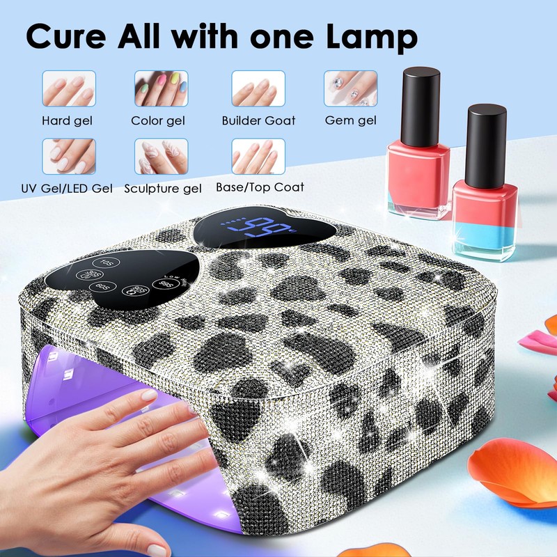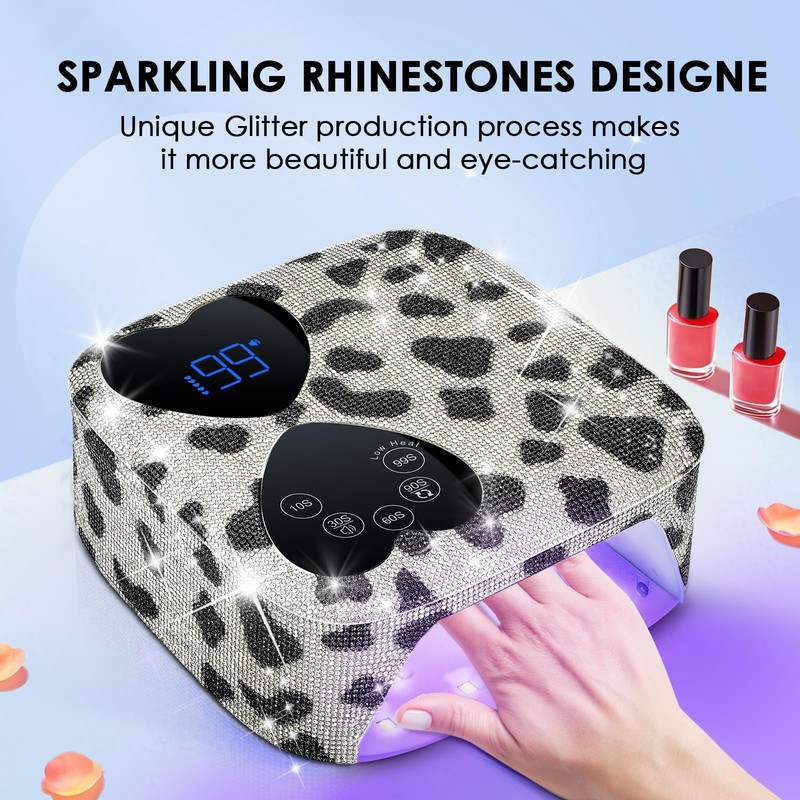 - 𝐒𝐩𝐚𝐫𝐤𝐥𝐢𝐧𝐠 𝐃𝐢𝐚𝐦𝐨𝐧𝐝 𝐃𝐞𝐬𝐢𝐠𝐧: This bling nail lamp is made of dazzling rhinestones that sparkle and shine! It boasts a beautiful appearance and unique design. The special sparkling diamond embellishment design not only enhances the beauty of the UV nail lamp, but also adds an eye-catching glow, perfect for creating delicate and sparkling nails.
