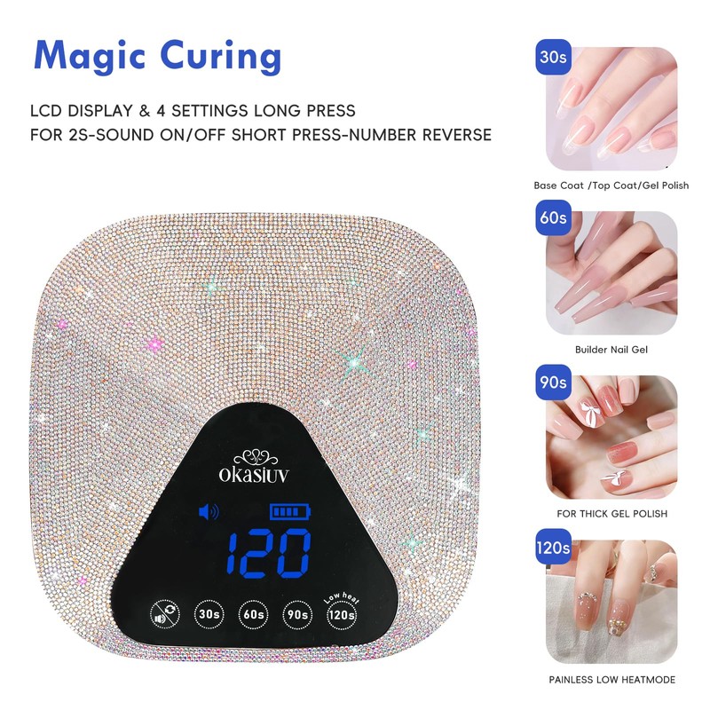 Okasiuv UV LED Nail Lamp with UV Gloves,Magnetic Metal Mirror Base Cordless Nail Dryer, Gel Polish Curing Light with 4 Timers,Touch Control Display,Auto Sensor for Professional Salon & Home