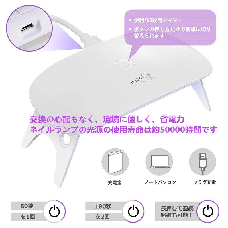 - Compact Nail Set: Compact and portable so you can enjoy your salon at home. Especially suitable for friends' journey. Accessories: Nail dryer main unit x 1, USB cable x 1, Gel mat x 1, 6 finger cover, Japanese instruction manual x 1