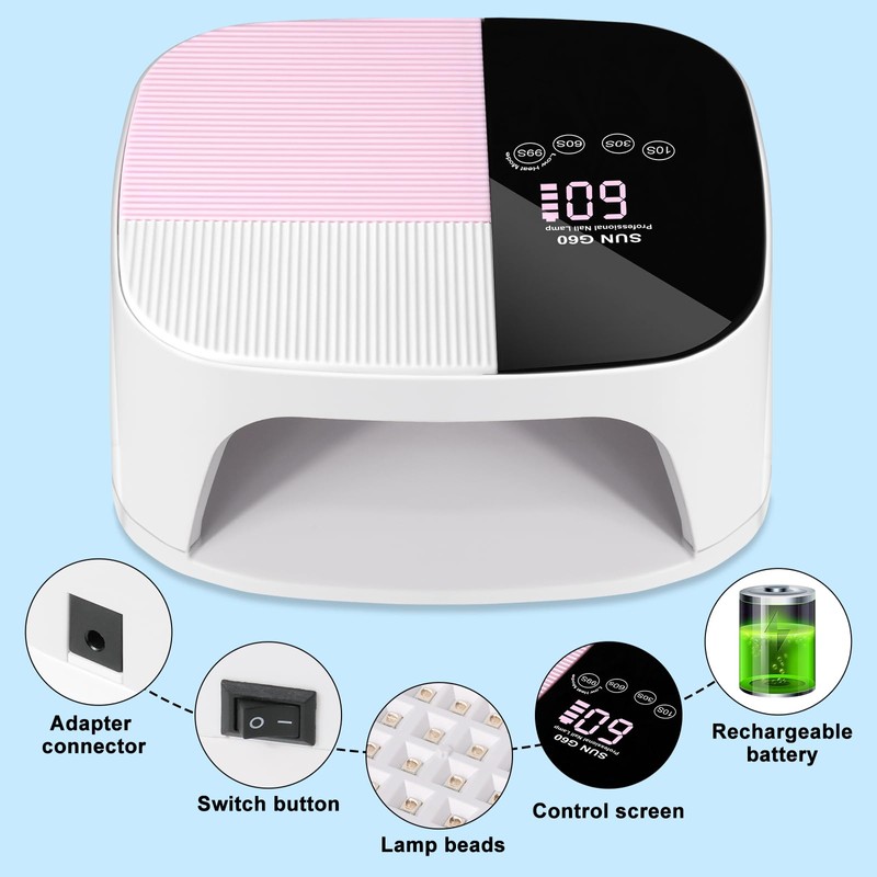 - 【Cordless & Rechargeable】Our cordless UV nail lamp is equipped with a rechargeable battery that can be charged for 2 hours and used for 5 to 7 hours. You can enjoy it anywhere without being affected by the wires.