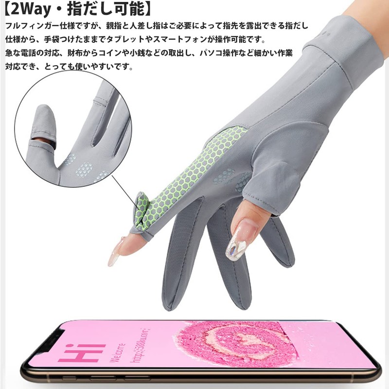 Product Name: UV Protection Gloves, Women's, Summer, 2 Fingerless, 2 Fingerless Gloves, UPF50+, Sun Protection, Driving Gloves, Anti-Slip, Breathable, Quick Drying, Thin, Cold Feeling Gloves, Smartphone Compatible, UV Gloves, 2 Way, Full Finger, Women's Gloves, Driver, Bicycle, Sports, Fishing, Outdoors, Sunshade, UV ProtectionMaterial: Polyester + Polyurethane