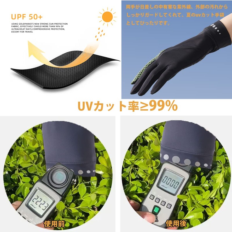 Features: UV gloves protect your skin from UV rays by 98% and protect your skin from sunlight, and UV rays. Anti-slip design, suitable for driving or bicycle gloves.