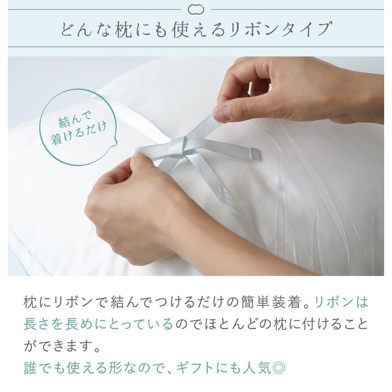 - 【どんな枕でもOK】枕にリボンで結んで着けるだけの簡単装着。リボンの長さを長めにとっているので、普通の枕だけでなく、抱き枕などにも着けることができます。誰でも使える形なので、ギフトにも人気です。