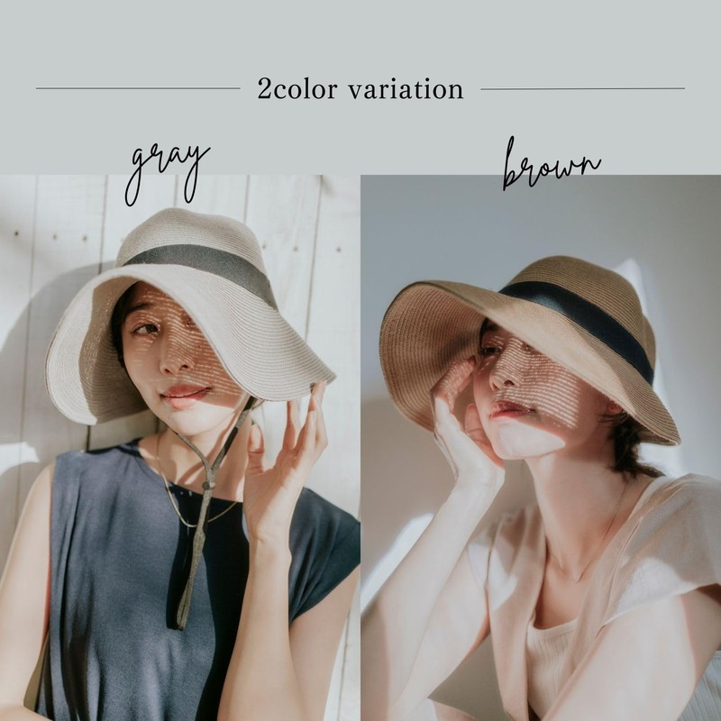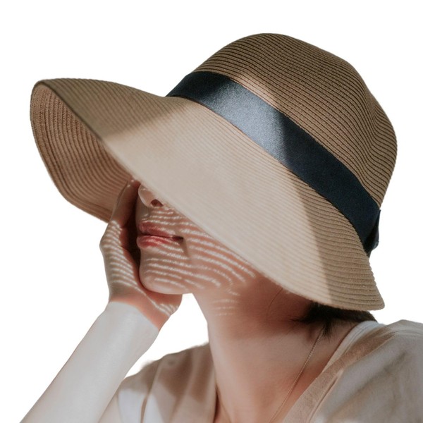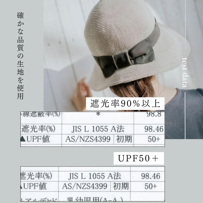 [ムーンバット] 帽子 ハット 洗える ペーパーブレード 前つば広 バック リボン 遮光 UVカット UPF50 洗える つば長め 10.5cm あご紐付き サイズ調整可能 65881 ベージュ
