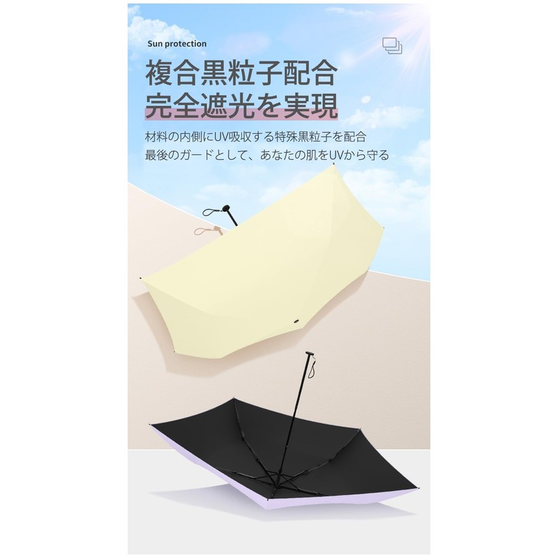 • ★【UVカット99%・UPF50+】 完全遮光UVカットの男性も女性も使える無地の折りたたみ傘です。 内側にはブラックラミネート加工がほどこされ、道路や建物からの照り返しのプロテクト効果も抜群