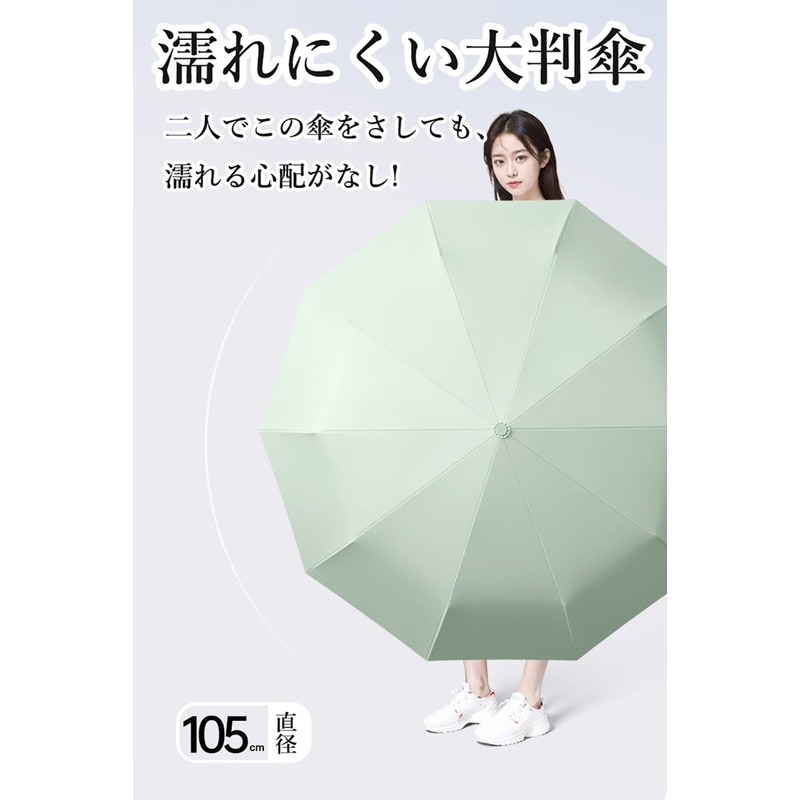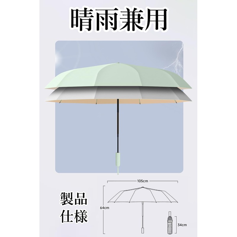 - 【大型サイズ設計】大型サイズ設計の傘で、直径105cmの広大な傘面積を実現しています。この大きな傘面積により、雨が降っても日差しが強くても、効果的に身体を守ることができます。また、収納カバーが付いており、傘をしまいやすく、持ち運びも非常に便利です。