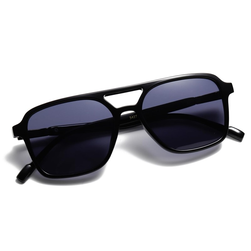 UV400 Sunglasses - Aviator Glasses with Double Bridge in Retro 70s Style - Lightweight & Unisex for Men and Women - Trendy Glasses for Driving, Travel, Everyday & Outdoor Use, Black/grey