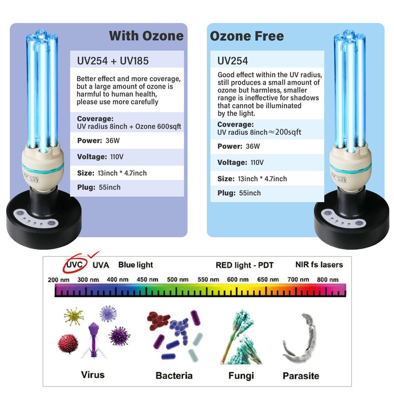 - PORTABLE & CONVENIENCE - Lightweight and easy to carry, this 36W UVC lamp is perfect for use at home, in the office, or on the go. Its compact size makes it simple to move and store, offering convenience wherever you need it
