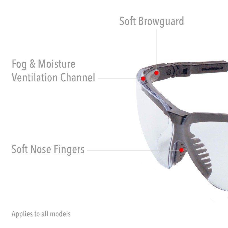 The Uvex Genesis is the best selling safety eyewear in the world, offering the best in comfort, protection and style. Built with patented Multi-Material Technology and a high level of adjustablilty, the Uvex Genesis delivers a broad range of superior benefits. Genesis provides workers with extraordinary all-day comfort and raises the bar on compliance. Made in the USA.