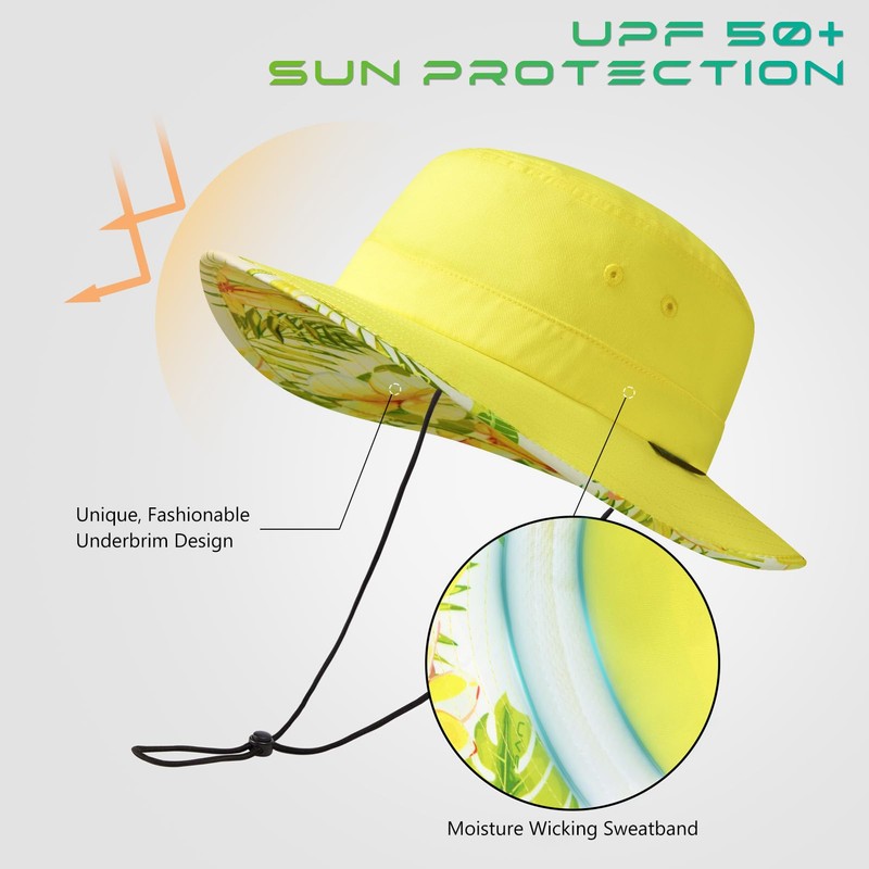 UVSAI UPF 50+ Foldable Sun Hat Patterned Under Brim Bucket Hats for Summer Hiking Fishing Beach Safari Men Women Light Yellow