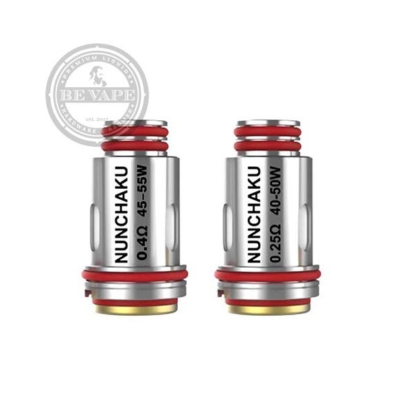 • Technical data: Uwell Nunchaku UN2 0.14 ohm coil material: mesh resistance: 0.14 ohms power range: 50 watt-60 watts Uwell nunchaku UN2 0.2 ohm coil material: mesh resistance: 0.2 ohms power range: 50 watt-60 watts
