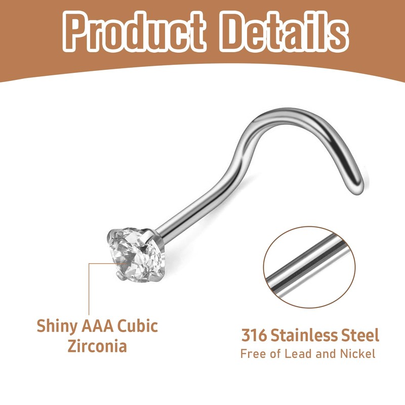 - 【High Quality Material】Uwiyo nose piercings are made of high quality 316L stainless steel and AAA+ cubic zirconia, lead and nickel free, lightweight and durable, do not erode, rust or fade. Smooth surface and edges without scratches, no skin injury, comfortable to wear.