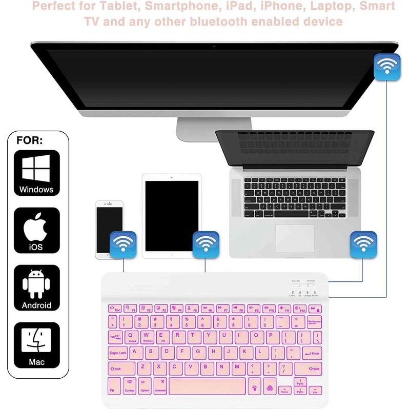 - CONNECTION WITH MULTIPLE DEVICES & STABLE BLUETOOTH 5.1 — The built-in Bluetooth 5.1 technology allows the Bluetooth keyboard to easily move between devices while pairing, keeping your desktop clutter-free.Compatible with Acer Chromebook Tab 10, iPad,iPhone,iMac,MacBook,Laptop,PC,Tablets, Smartphone, Windows, IOS, Mac OS, and Android because it recognizes the system of your device and maps keys,automatically connects to your previously connected and supports all major operating systems.