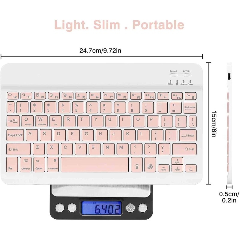 - EXCEPTIONAL APPEARANCE & ERGONOMIC DESIGN — The UrbanX Bluetooth keyboard is made of premium ABS, has feet that maintain it at an ideal slope, and is designed to reduce wrist pain over extended periods of typing. A chic backlit color scheme offers it a refined and alluring appeal. the slim lightweight design and backlit keys all help working with your wireless Bluetooth and 2.4GHz keyboard on the go, and in any lighting situation.