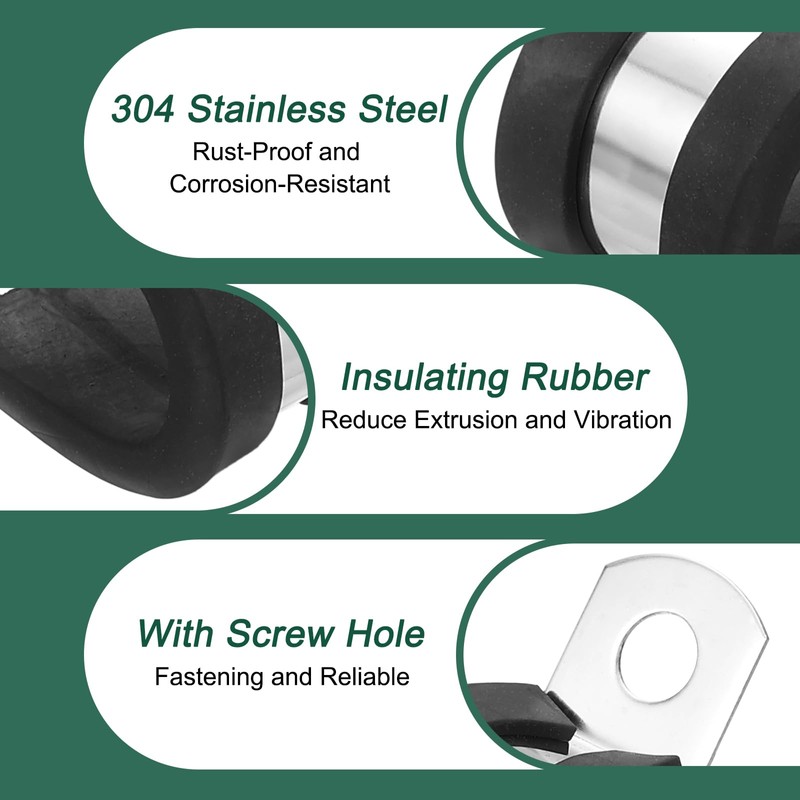 Design: Stainless steel cable clamps with rubber pads can effectively reduce extrusion and vibration during transportation, protect your cables and pipes, and reduce wear during use. Extended pipe service life.