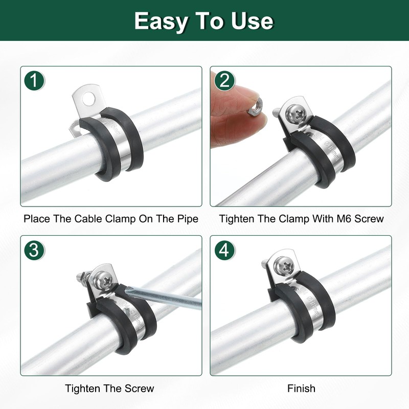 Easy to Use: Place the cable clamp on the pipe and tighten the screws (the product does not include screws). The R-shaped wire clamp is flexible and stable, easy to adjust and remove. Please confirm the size before purchasing.