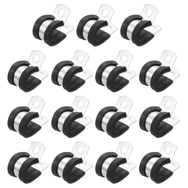 uxcell 1/2"(12mm) Cable Clamp, 304 Stainless Steel Rubber Cushioned Insulated Clamp R Shape Metal Clamp Tube Holder for Pipe Hose Wire Cord Installation 15Pcs