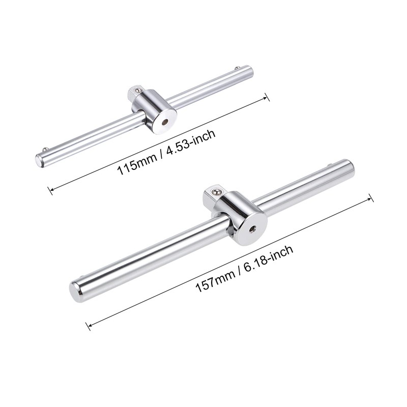 uxcell 1/4" and 3/8" Drive Sliding T-Handle Socket Wrench Chrome Finish Cr-V Steel 4 Pcs