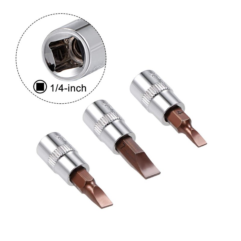 uxcell 1/4" Drive x FD4 - FD7 Slotted Bit Socket Set, S2 Steel Bits, CR-V Sockets 1.5-inch Length (for Hand Use Only)