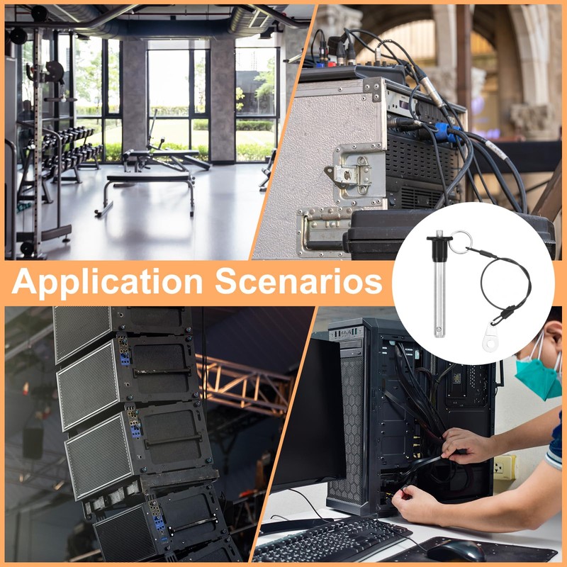 • [Wide Application] Ball locking pins can be widely used in stage audio, aviation manufacturing, gym replacement parts, boat deck hinges, awnings, mechanical engineering, etc.