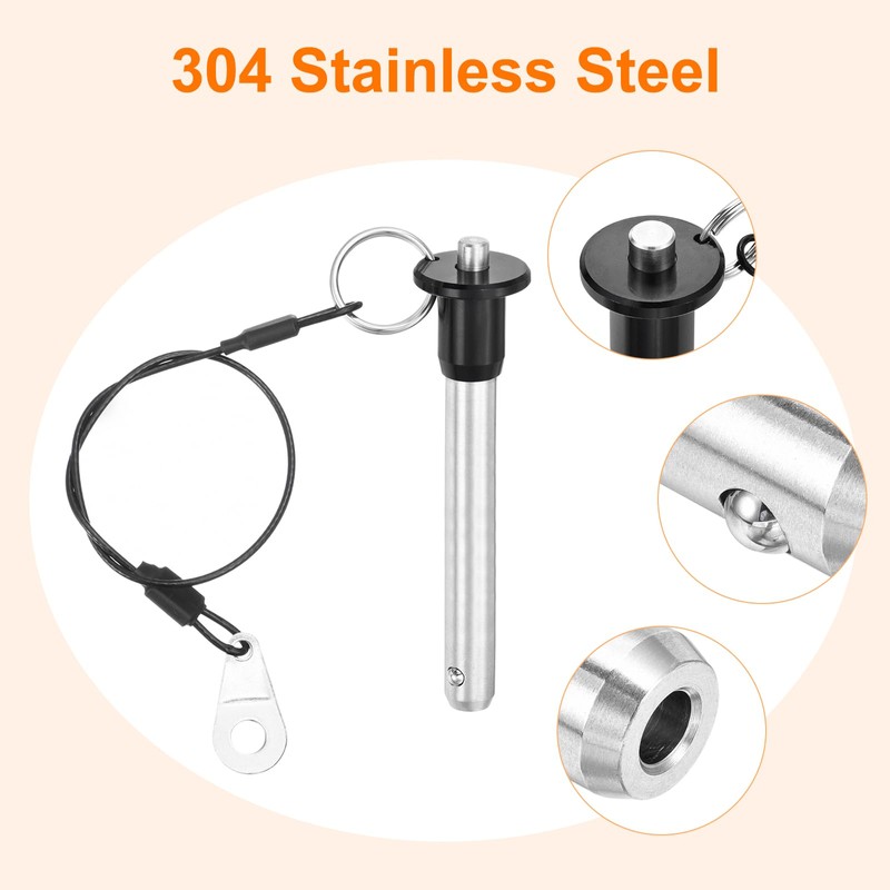 • [Feature] The ball lock pin can quickly connect and disassemble two or more parts, and effectively fix and release mechanical parts. It can provide a stable and high-strength connection in the locked state. The pull ring can fix the anti-lost rope to prevent loss, and you can hang it up when you don't need it.
