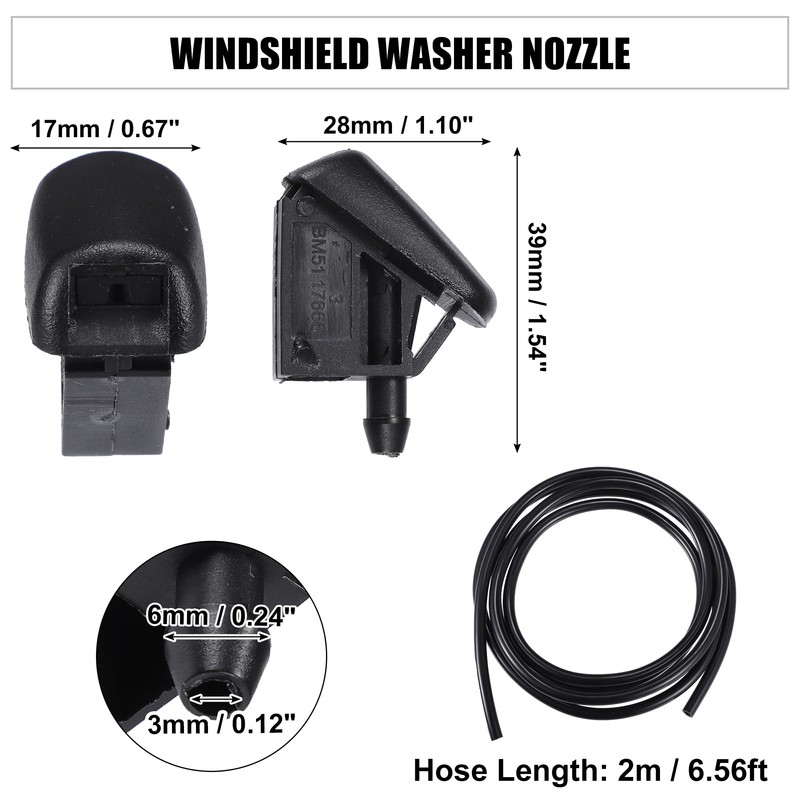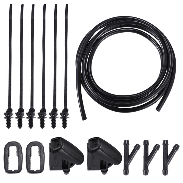 - [Package] 2 x Windshield Washer Nozzle, 2 x Nozzle Gasket, 3 x Hose Connector, 1 x Windshield Washer Hose, 6 x Plastic Tie. Please confirm your car model and OE number before purchasing. Please check the relevant operation video when you replace it.
