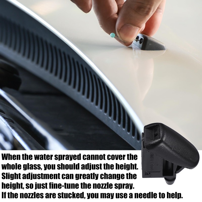 - [Function] Our front windshield nozzle wiper spray is designed to spray away during automated car washes and snow and ice removal. Quick spraying of windshield and restoration of clear view, contribute to driving safety.