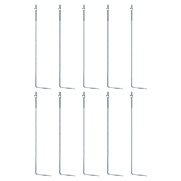 uxcell 10 Pack Anchors Bolt, 1/2"-13 x 24 L-Shape Foundation Bolts Carbon Steel Galvanized L-Bolts with Nuts and Washers for Concrete Pad Pouring Wood Projects, White