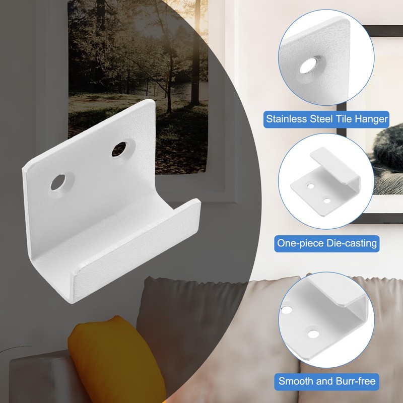 - Easy To Use: Simple operation, you only need to drill holes in the wall, requiring the hangers to be mounted on a wall using screws (provided in sets), and tighten the screws, and then the tiles, mirrors, or frames are easily slotted into the hanger's groove
