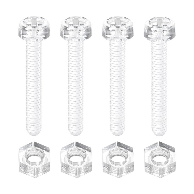 uxcell 100 Sets Clear Acrylic Screws and Nuts Kit, M3 x 20mm PC Transparent Round Head Phillips Bolts with Hex Nuts, Bolts and Nuts Kit for Machine Electronic Equipment DIY Crafts